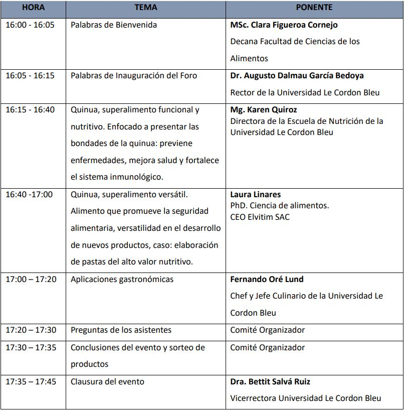 Orgullosos de nuestra diversidad alimentaria, en la Universidad Le Cordon Bleu ponemos en valor los alimentos de origen peruano. En alianza con la empresa “Fideos Mireina” destacaremos el aporte nutricional y y versatilidad culinaria de la quinua.