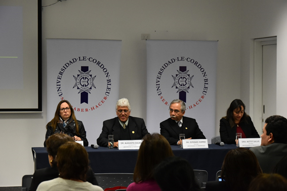 El jueves 13 de setiembre se llevó a cabo la ceremonia de apertura del año académico 2018-II de la universidad Le Cordon Bleu. Este evento marca el inicio de las actividades académicas para los estudiantes, evento que contó con la presencia del renombrado experto en salud pública Dr. Enrique Jacoby, el Dr. Jaime Delgado, la Lic. Miyaray Benavente y la Eco. Karla Gabaldoni, quienes participaron en un conversatorio sobre la ley de alimentación saludable y su implementación en el Perú.