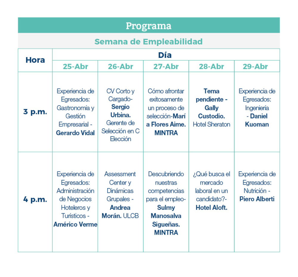 Por esta razón presentamos la Semana de Empleabilidad (26 al 29 de abril) donde buscamos capacitar a toda la comunidad universitaria.