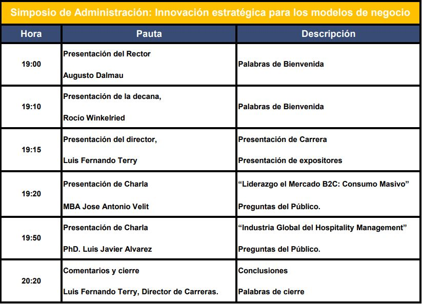 Programa del "Simposio de Administración: Innovación Estratégica para los modelos de negocio"