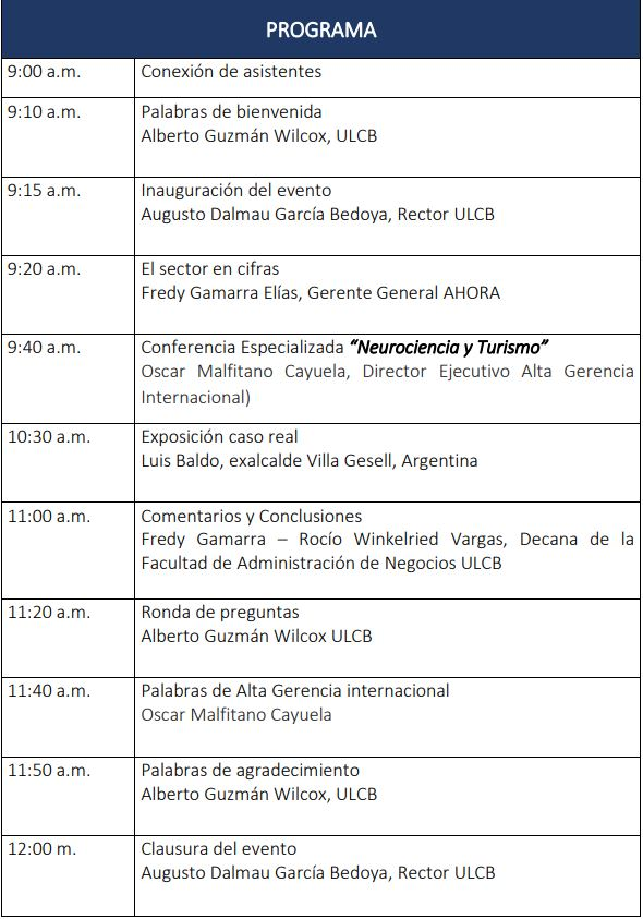 La Universidad Le Cordon Bleu, presenta el conversatorio XII Futurismo / XII City Marketing: “Neurociencia y Turismo”, la cita es este viernes 26 de noviembre a las 9 a.m.